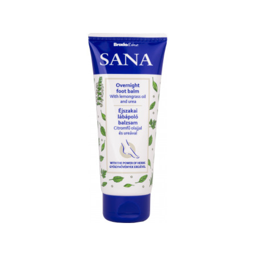 Sana balzam na nohy s obsahom oleja z citrónovej trávy a ureou zmäkčuje, vyživuje, hydratuje a odstraňuje nepríjemný zápach nôh. Podporuje relaxáciu unavených nôh. Balzam je produkt bohatý na aktívne rastlinné zložky a odporúča sa najmä na nočnú starostlivosť o nohy. Urea, provitamín B5, glycerín a obsah avokádového oleja zanecháva pokožku vyživenú. Prírodné zložky pomáhajú znižovať potenie nôh, čím eliminujú nepríjemné pachy. Esenciálne oleje z citrónovej trávy, mäty a eukalyptu zlepšujú krvný obeh a prispievajú k relaxácii a regenerácii unavených nôh.